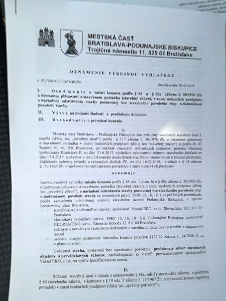 Okresný úrad vydal stanovisko dňa 16.2. 2018, mestská časť PB ho prevzala 20. 2.2018