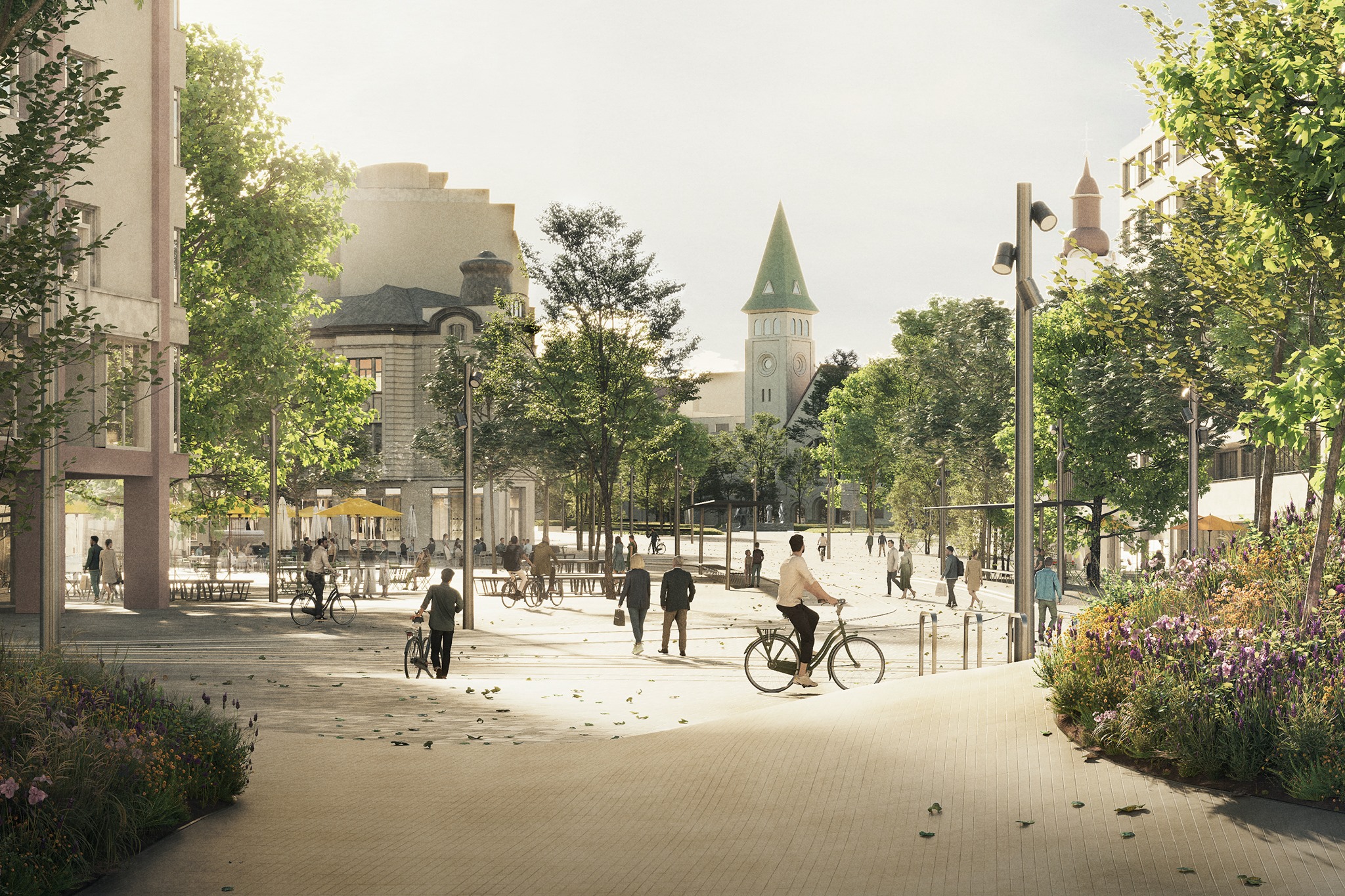 Novú podobu takzvaného Živého námestia vytvoril nemecký ateliér Loidl, ktorý vzišiel z medzinárodnej architektonickej súťaže. Jeho návrh sceľuje priestor troch námestí s rozlohou takmer 35.000 štvorcových metrov (m2) tým, že všetky povrchy dáva na jednu úroveň a odstraňuje zbytočné bariéry. Pohyb peších sa tak má zjednodušiť na všetkých častiach námestia.
