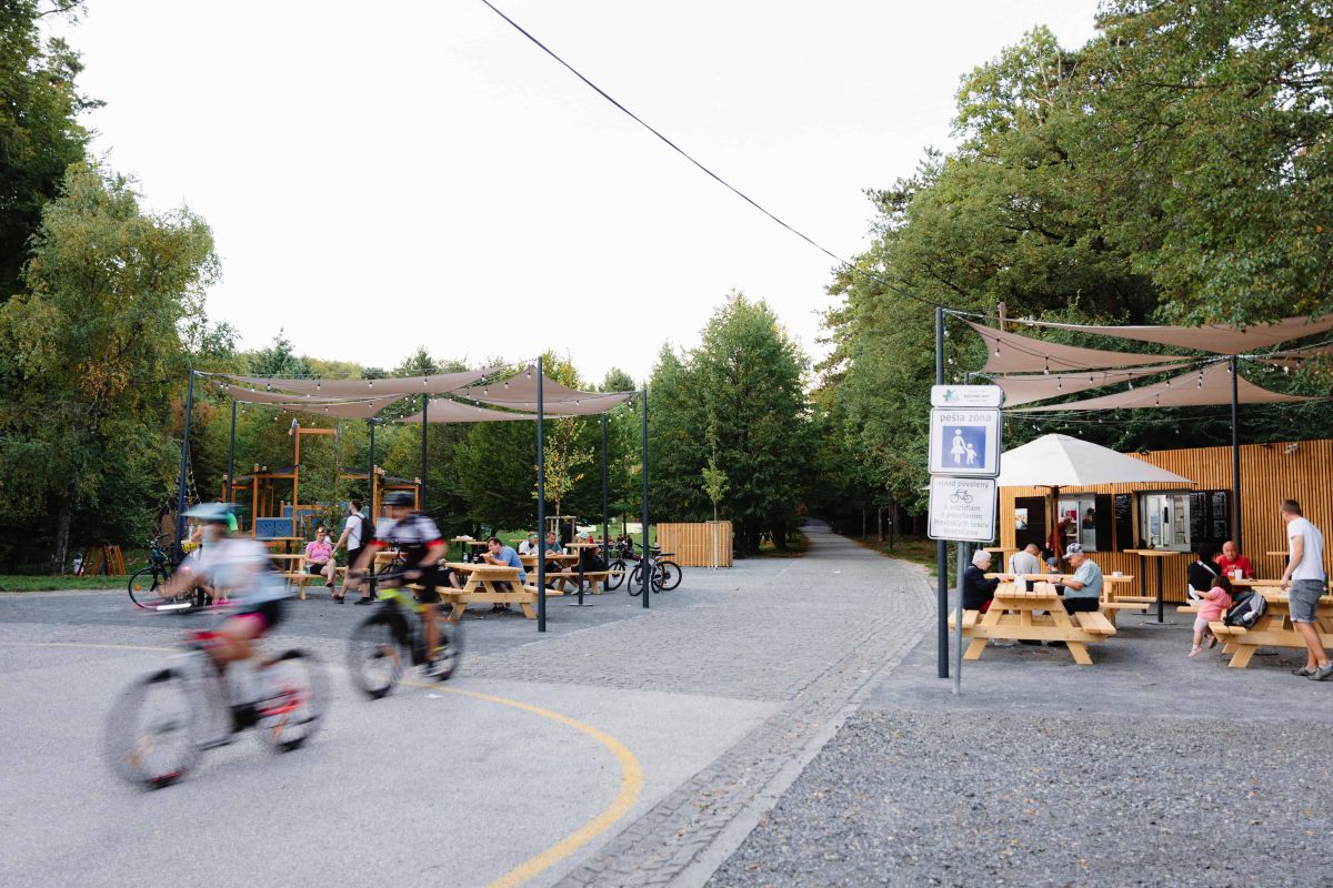 Revitalizácia priniesla aj servisný cyklostojan, miesto na umytie bicykla a oddelené zázemie pre zásobovanie bufetu. Z asfaltovej plochy sa stalo príjemnejšie miesto na oddych v prírode, kde pribudli aj nové možnosti sedenia, tieniace plachty či osvetlenie pre jesenú večernú atmosféru.