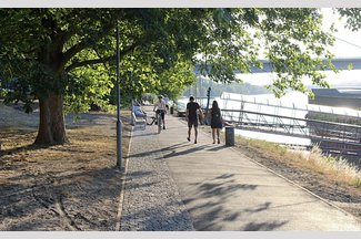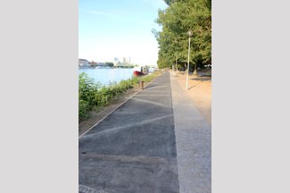 V prvom i druhom prípade ide o vskutku „originálne“ asfaltové promenády. Škoda, že pri príležitosti otvorenia nového, asi 300 metrov dlhého úseku asfaltového chodníka s lavičkami a odpadkovými košmi, si mesto nedalo ani tú námahu, aby dalo vyklčovať burinu...