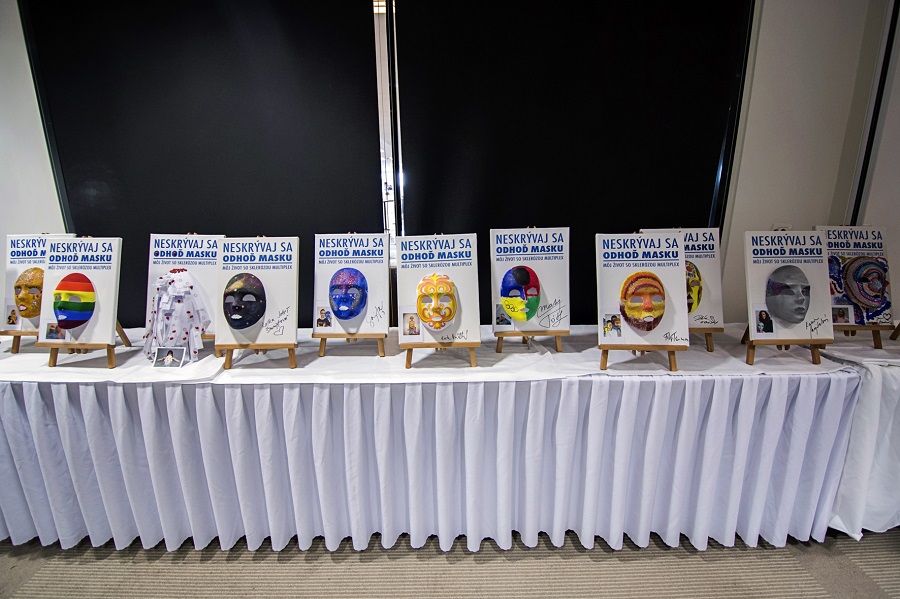 Pri príležitosti Svetového dňa povedomia o SM sa známe osobnosti zapojili do projektu „Neskrývaj sa – odhoď masku“ s cieľom osloviť a podporiť pacientov s touto ťažkou chorobou tisícich tvári a tiež zvýšiť povedomie širokej verejnosti, upozorniť na varovné signály a zbúrať mýty a predsudky o tomto ochorení.