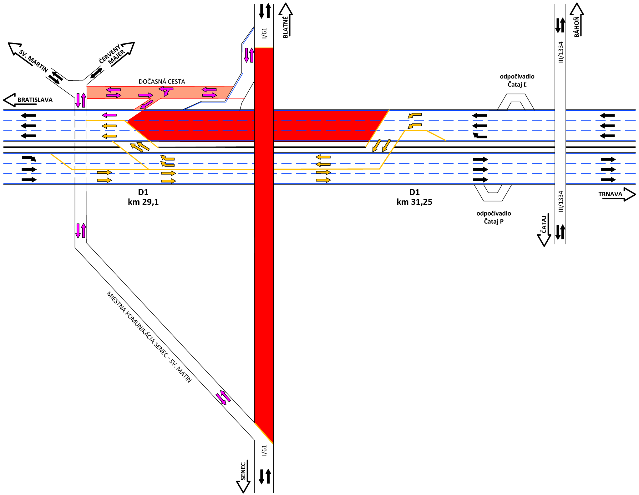 V tomto čase plánuje spustiť južné vetvy križovatky Blatné, v smere z Bratislavy do Trnavy, motoristi tak z D1 cez križovatku Blatné budú môcť schádzať do Senca, respektíve Blatného a okolitých obcí.
