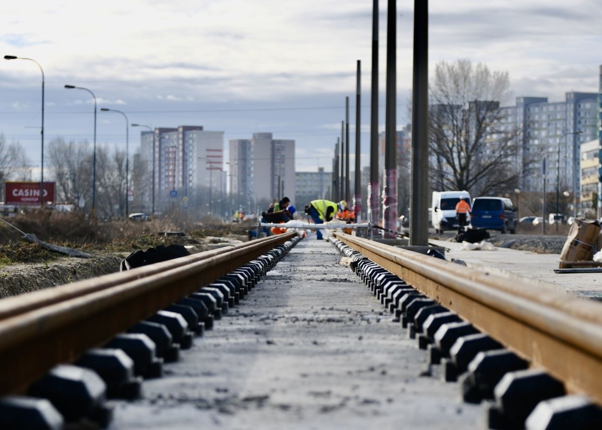 Na väčšine úseku novej električkovej trate je vybetónovaná spodná doska jazdnej dráhy, na 620 metroch už aj s koľajami. Postupne by mali pribúdať nové mosty, križovatky, aj nové depo.