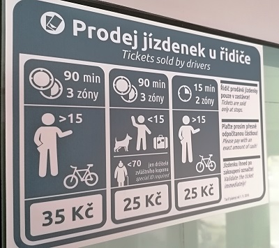 Príjemné bolo, že sme si základný jednorazový cestovný lístok mohli kúpiť priamo u vodiča. Hodilo sa nám to, pretože sme u seba žiaden nemali. Vodič nám ho ochotne predal za 25 korún, museli sme mať presne.