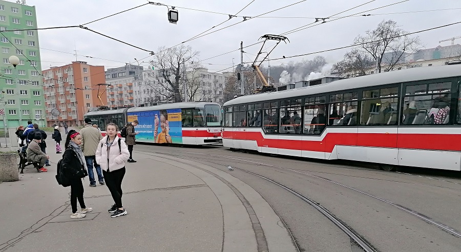 Rozdiel je v rozchode tratí. Tá brnenská, má rozchod vlakový. Narazili sme na zastávku električky, kde zastala práve tá dlhá, no v zákrute. Nevieme ako vodič videl na cestujúcich „za zákrutou“. Isté je, že do predných dverí nastupovali cestujúci už mimo nástupnú hranu...