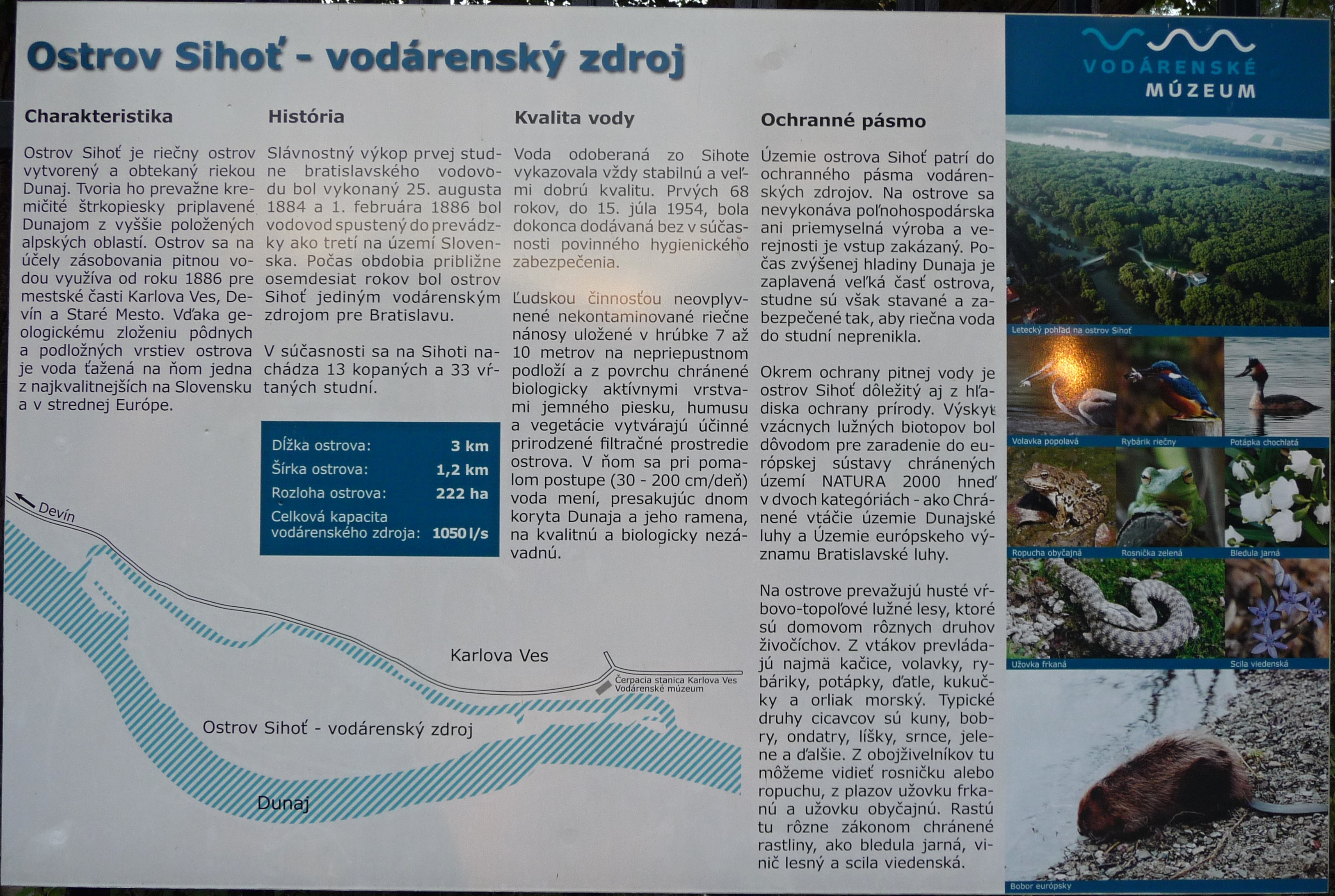 Ostrov Sihoť sa na účely zásobovania pitnou vodou využíva od roku 1886, konkrétne zásobuje mestské časti Karlova Ves, Devín a Staré Mesto.
