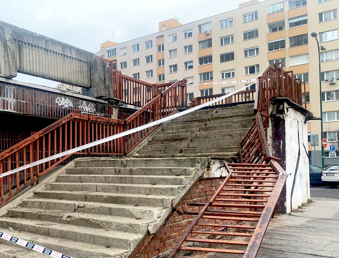 V bratislavskej Petržalke sa uplynulý víkend zrútilo zábradlie na schodisku na Jasovskej ulici. Mestská časť, v ktorej správe sa daný úsek pochôdznej terasy nachádza, pristúpila k základným bezpečnostným opatreniam a schodisko zabezpečila. Pre jeho stav však nie je vylúčené jeho zbúranie a výstavba nového schodiska. Pre TASR to uviedla hovorkyňa Petržalky Mária Halašková.