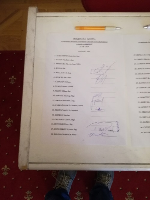 Prikladám redakcii prezenčnú listinu poslancov z tohto zasadania. Potom, ako primátor otvoril májove zastupiteľstvo (22. 6.2018), začali podľa mňa niektorí poslanci šachovú partiu, aby mohli zablokovať zastupiteľstvo.