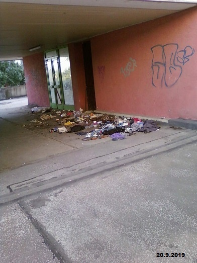 Sú to pozostatky po nejakých emigrantoch, ktorí sa tu zdržovali, a zanechali nám tu nezabudnuteľnú spomienku v podobe rôzneho odpadu, ako: rôzne obaly a fľaše z alkoholických nápojov, použité injekcie, znečistené šatstvo od zvratkov, moču a stolíc, použité vložky, a iné nebezpečné infekčné hnusy.