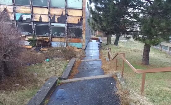 Nedávno bol síce hlavný vchod zabednený OSB doskami, avšak bezdomovci do budovy naďalej vnikajú cez nezabezpečené okná.