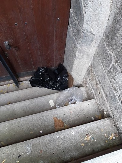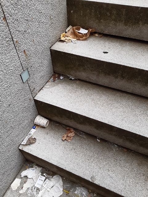 ale schody, ktoré vedú do podzemia, sú zanesené odpadkami.