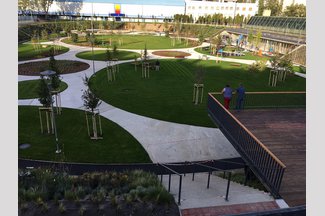 Nový priestor by mal zároveň efektívne využívať vodu v danej lokalite. Dažďovú vodu zo spevnených, ale aj zo zelených plôch zbiera systém drenážnych trubiek do novovybudovaného jazera.
