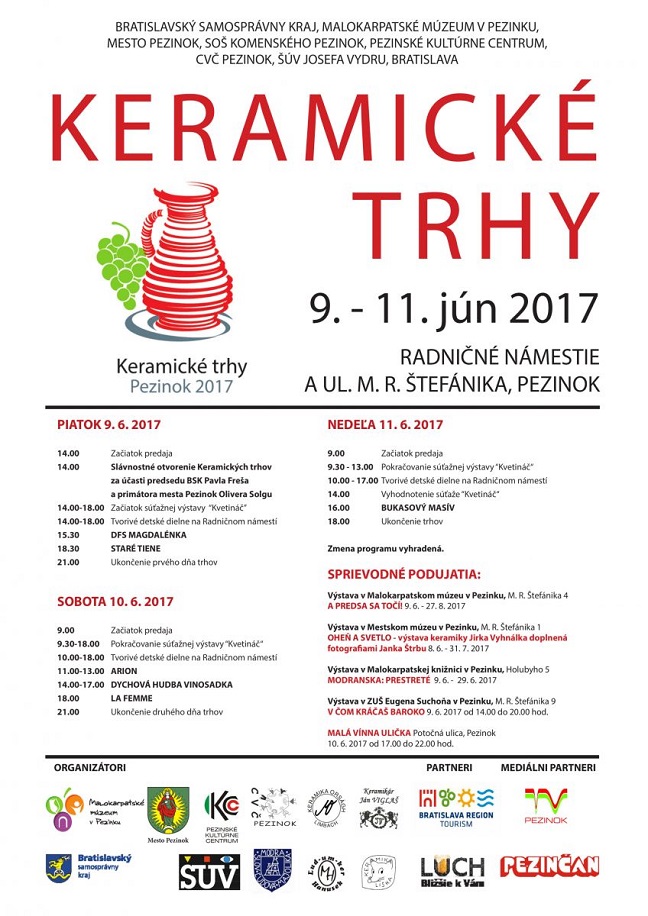 V piatok o 14:00 prepuknú Keramické trhy v Pezinku! Predávať sa bude miestna i zahraničná keramika a počas celého trvania až do nedele je pre Vás pripravený pestrý sprievodný program.
