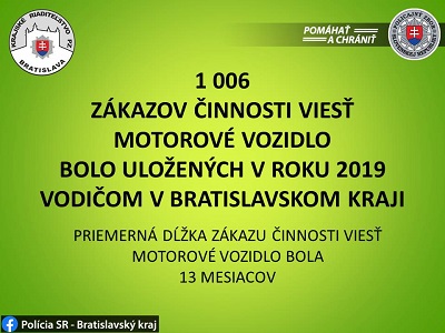 Z celkovej výšky uložených pokút dopravnými policajtmi v roku 2019 v Bratislavskom kraji bolo 575 905 eur v úseku správneho konania ( z toho najviac v okrese Bratislava II).