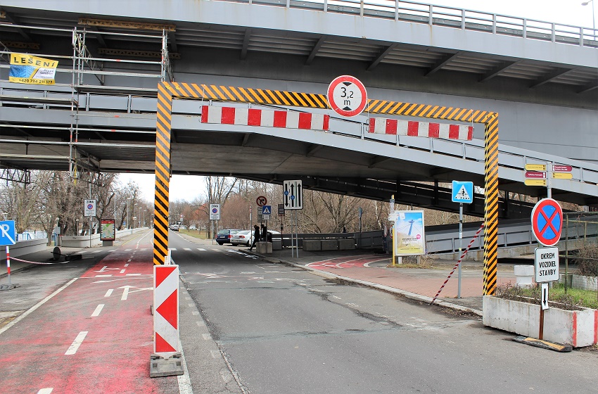Ako nám potvrdil magistrát hlavného mesta, rampa tam musí byť umiestnená kvôli lešeniu, ktoré je postavené pod mostom a ktoré znížilo svetelnú výšku podjazdu mosta.
