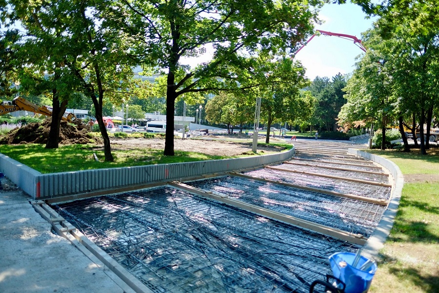 "Práce sú v plnom prúde, spevňujú sa chodníky, pokladajú sa nové trávniky na závlahové systémy, pribudlo nové 120-metrové potrubie, ktoré je nadimenzované nielen na závlahu, ale aj neskoršiu prevádzku fontány," spomenul Nesrovnal.