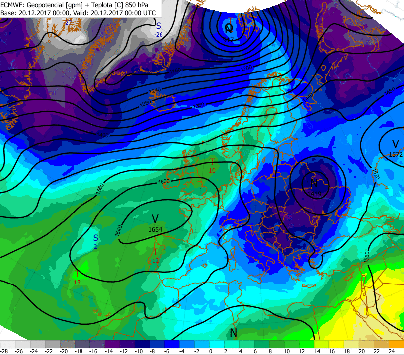 Na Štedrý deň (24.12.) začne nad Slovensko za teplým frontom od severozápadu prúdiť teplý morský vzduch.