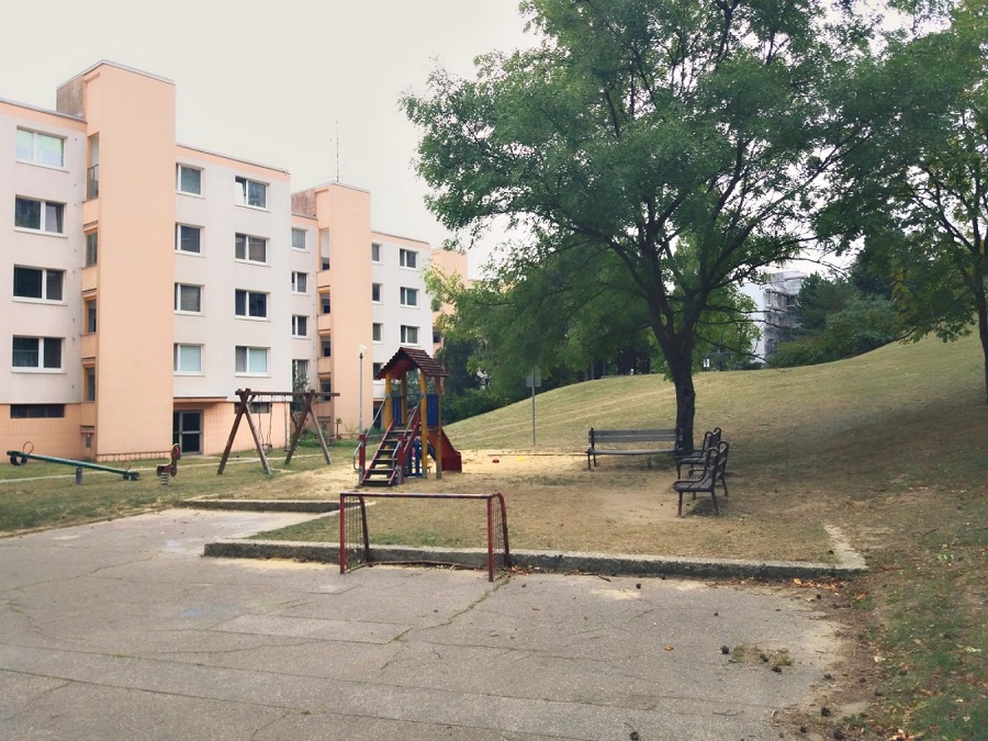Miestni ho poznajú ako ihrisko nenápadné a mierne ukryté uprostred panelákov. Počas leta je to však jedno z mála ihrísk, ktoré núka aj trošku tieňa. Potrebovalo by ale trošku oživiť.