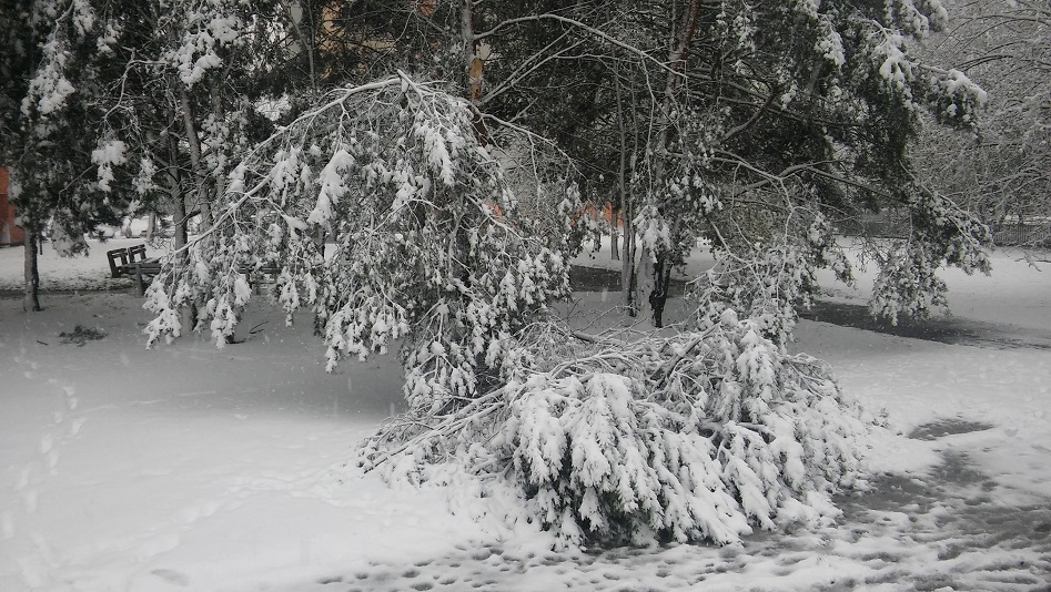V Bratislave pri intenzívnom snežení láme mokrý sneh konáre mnohých stromov. Na bratislavských Kramároch odstraňujú strom, ktorý spadol na osobné autá. Bratislavskí hasiči zasahujú pri odstránení stromu, ktorý spadol na osobné autá na Limbovej ulici v Bratislave.