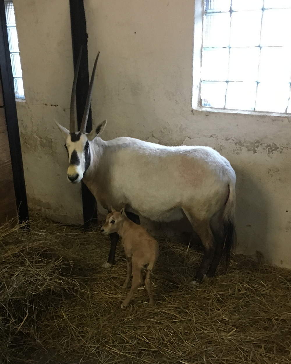 Od tretieho týždňa už je matka s mláďaťom spojená s ostatnými členmi stáda a obaja preto chodia von na dlhší čas, takže ich návštevníci budú môcť vidieť vo výbehu.