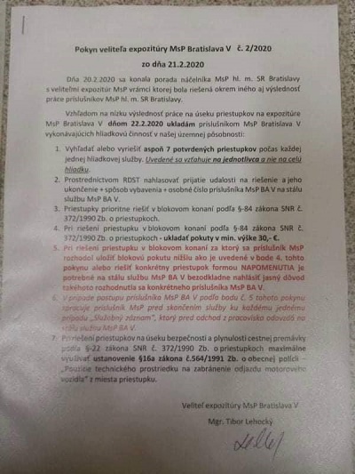 Veliteľ expozitúry Mestskej polície (MsP) Bratislava V Tibor Lehocký vydal v piatok (21. 2.) pokyn, ktorý sa objavil na sociálnych sieťach a vyvolal veľkú diskusiu i kritiku.