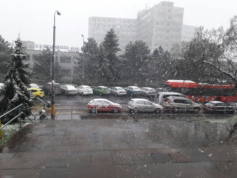 Meteorológovia na dnes síce hlásili chladné počasie, ale snehovú metelicu zrejme nepredpokladali. V západnej časti Bratislavy a vo vyšších polohách sa teplota nevyšplhala vysoko nad nulu, dokonca v niektorých oblastiach je len jeden stupeň nad nulou, v južných častiach hlavného mesta okolo troch stupňov. SHMÚ na dnes predpovedal, že bude prevažne zamračené a na mnohých miestach dážď alebo dážď so snehom, v Malých Karpatoch sneženie. Veľmi chladno! Najvyššia denná teplota 4 až 7 st. Severný až severovýchodný vietor 7 až 13, v nárazoch miestami okolo 20 m/s (25 až 45, nárazy 70 km/h). Nie najpriaznivejšia predpoveď je aj na štvrtok. V Bratislave a okolí má byť len okolo 5 stupňov, naďalej chladno, dážď so snehom, alebo dážď, ale na niektorých miestach môže vykuknúť slnko. Meteorologické výstrahy na prudký vietor platia na celé územie Slovenska až do piatka.
