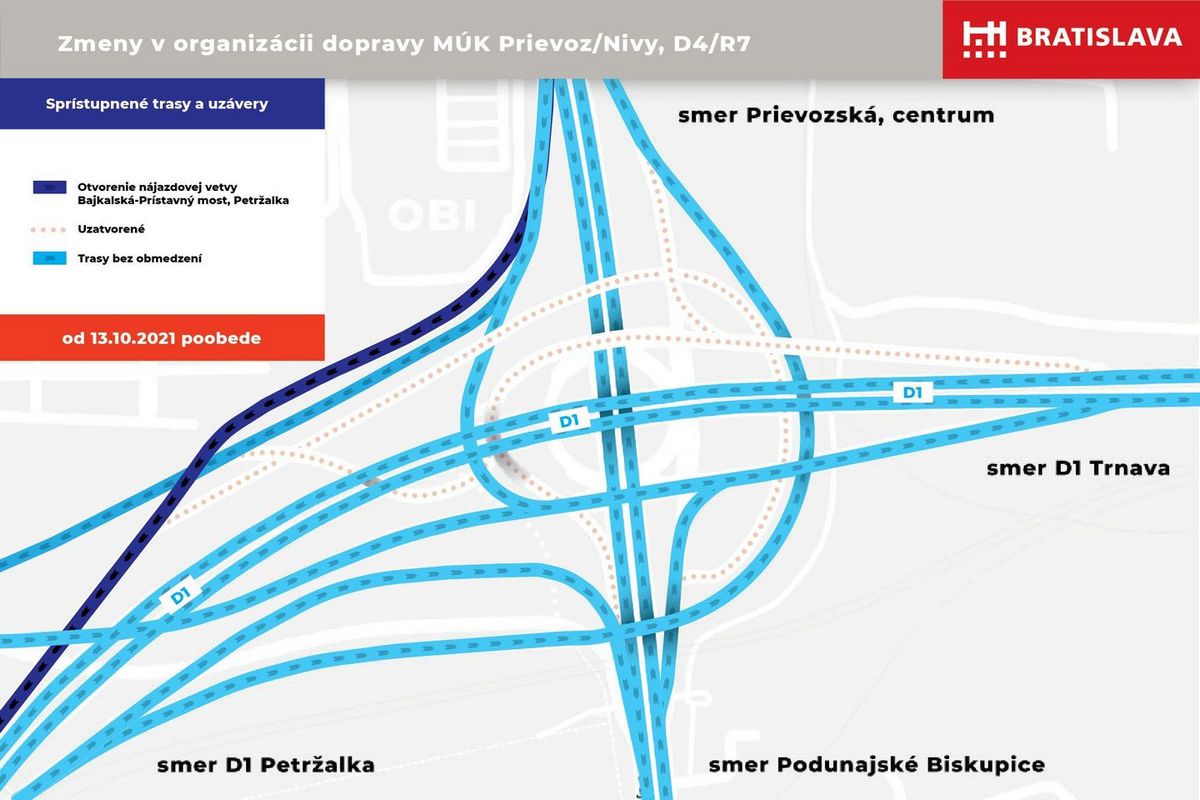 V Bratislave majú dnes popoludní, otvoriť zrekonštruovanú nájazdovú vetvu v smere z Bajkalskej ulice na Prístavný most do Petržalky.
