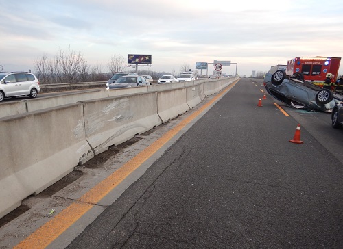 Následkom zrážky došlo k jeho prevráteniu na strechu v strednom jazdnom pruhu. Vodič vozidla Opel - 31ročný muž bol privolanou RZP prevezený k ošetreniu do jednej z nemocníc.