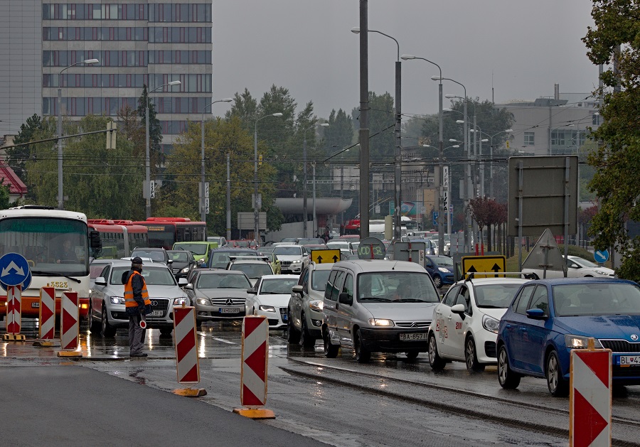 Rovnako aj na dopravné obmedzenie a tvorbu kolón pre výstavbu diaľničnej križovatky Triblavina neďaleko hlavného mesta.