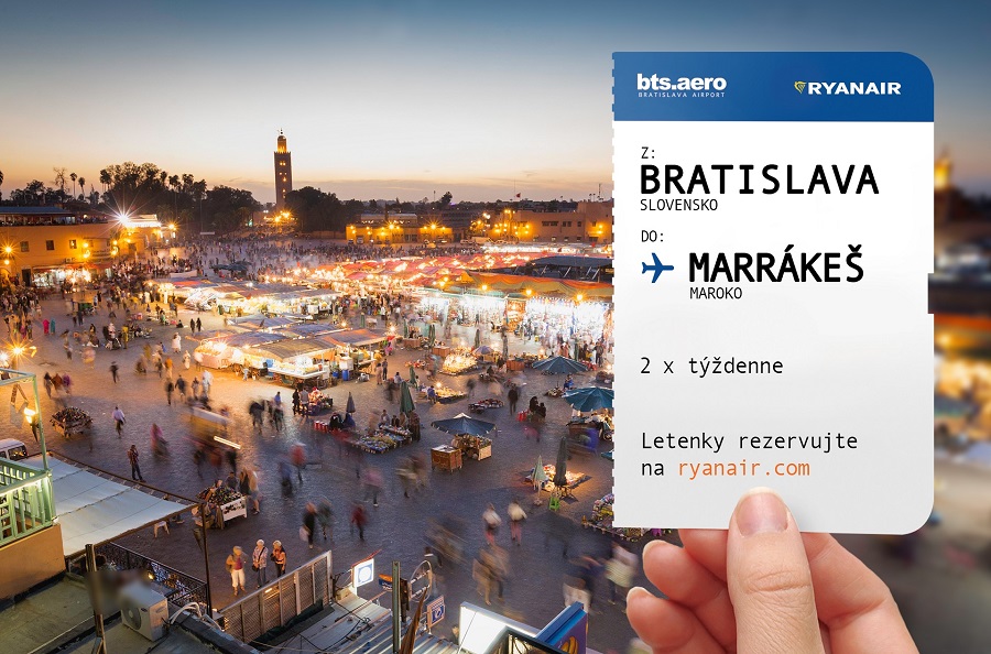 „Ryanair s potešením oznamuje spustenie prevádzky novej linky z Bratislavy do Marrákeša, ktorá bude k dispozícii dvakrát týždenne – od konca októbra v utorky a v soboty.