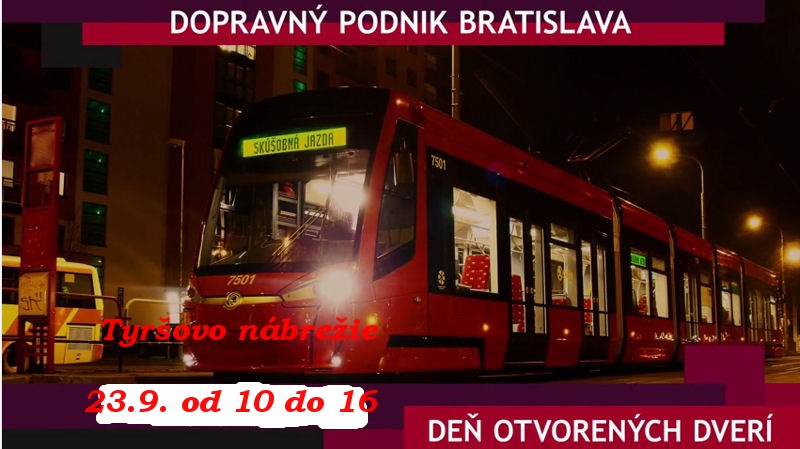 Dopravný podnik Bratislava pozýva všetkých priaznivcov verejnej dopravy na Deň otvorených dverí (DOD), ktorý sa bude konať v sobotu 23. septembra 2017 od 10:00 do 16:00 na Tyršovom nábreží ale aj vo vozovni Jurajov dvor.