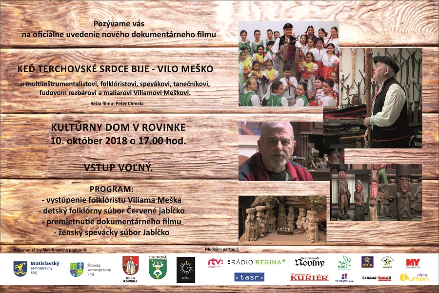 Slávnostná prezentácia filmu spojená s kultúrnym programom bude 10. októbra 2018 o 17.00 hod. v Kultúrnom dome Rovinka pri Bratislave. Pozvanie prijali aj zástupcovia BSK, Žilinského samosprávneho kraja /ŽSK/ a starosta obce Rovinka.