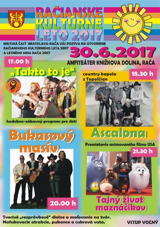 V piatok 30. 6. o 17-tej hodine sa v račianskom amfiteátri v Knižkovej doline slávnostne otvorí Kultúrne leto 2017 bohatým programom a úvodným premietaním letného kina.