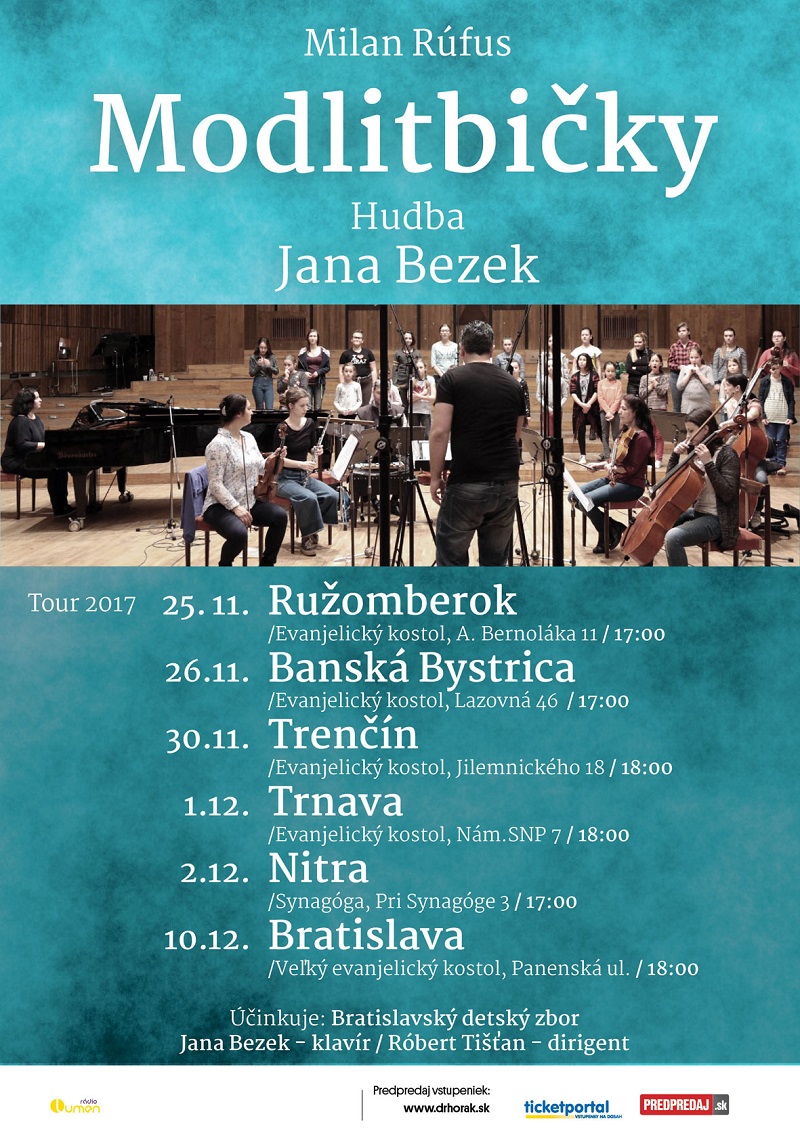 Na prelome novembra a decembra si zhudobnené Modlitbičky môžete vychutnať naživo. Jedenásť Rúfusových básní zhudobnených Janou Bezek pre detský zbor a komorný orchesterl zaznie: