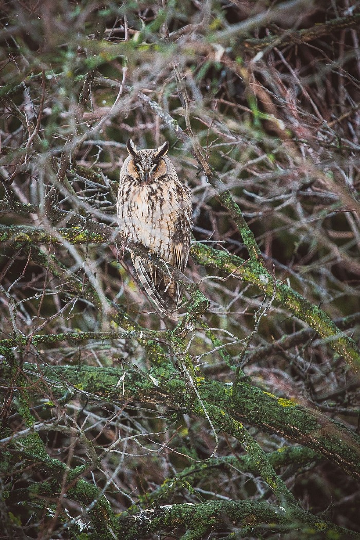 Nejde o malé počty, na stromoch odpočívajú naraz aj desiatky jedincov. Prezradia ich pierka na hlave pripomínajúce ušká a veľké oranžové oči, uviedol Tomáš Veselovský z RPS.
