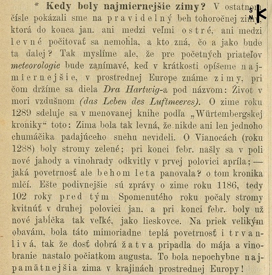 "Potom nastal alebo nenastal odmäk. Zdá sa teda, že naši predkovia zažívali kruté jesene, o akých sa nám ani nesnívalo.