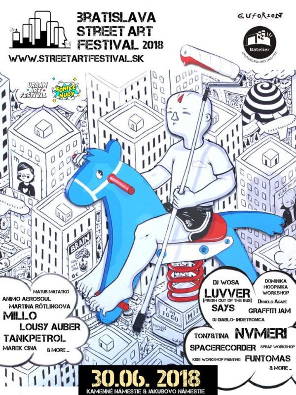 V hlavnom meste sa v pondelok začína 8. ročník Bratislava Street Art Festivalu. Milovníci umenia z radov obyvateľov Bratislavy i návštevníkov mesta sa tak majú opäť na čo tešiť na Kamennom a Jakubovom námestí.