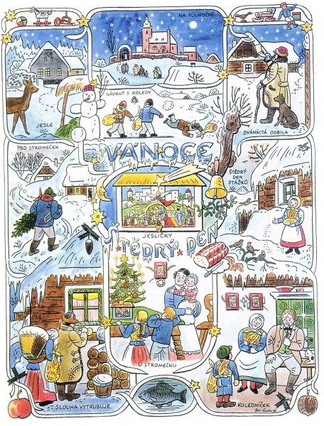 Krajina s koledníkom, Betlehem, Okno so stromčekom, Deti v zime, Vianočný kapor, Sluhova koleda, Zabíjačka, Pokoj ľuďom dobrej vôle a ďalšie tematické maľby dopĺňajú série obrazov z kníh Ladov veselý prírodopis, Strašidlá a vodníci, O bystrej kmotre líške a Dobrý vojak Švejk.