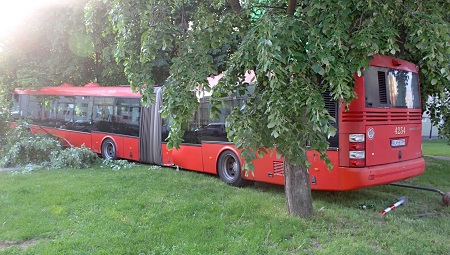 Záhadou asi navždy zostane, ako prešiel "bezvládny" autobus "bezpečne" cez frekventovanú Saratovskú ulicu, prešiel na chodník a "zaparkoval" to medzi stromami na trávniku, pričom zlomil len jeden, alebo dva konáre stromu. Odnieslo si to aj zopár áut....a značiek -.