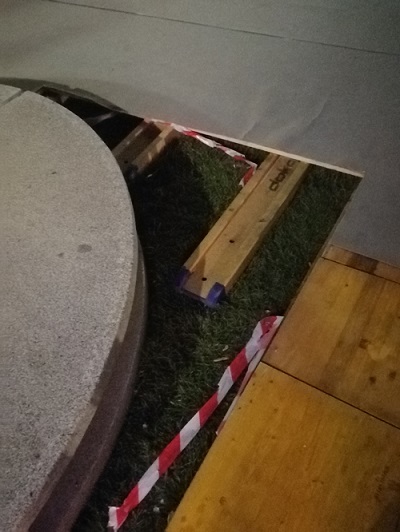 Nedotiahnuta podlaha. Pred pár dňami som bol svedkom, ako na tej nedokončenej diere spadol dôchodca a skončilo sa to úrazom.