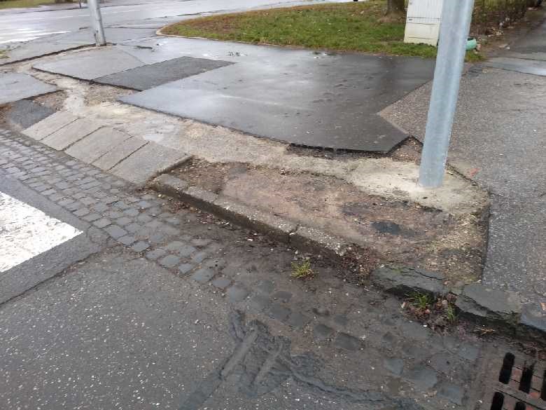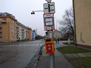 Sú z Riazanskej ulice na križovatke Riazanská / Hálkova pri zastávke MHD autobusov číslo 50 a 51.