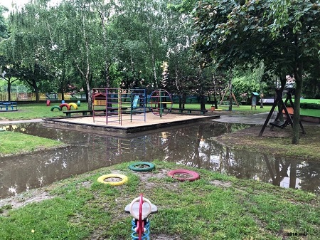 1./ Počas dlhšieho daždivého počasia, je umenie sa dostať do, alebo z areálu MŠ, ktorá sídli na Bohrovej ul.č.1. Lebo sa tam vytvorí jazero, kde voda dosahuje niekedy až výšku od 5 cm do 20 cm, lebo tu neexistuje žiadny odvodňovací funkčný systém na odtok dažďovej vody.