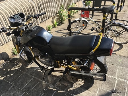 2./ Tu je už normálna a bežná vec vidieť vraky: autobusov, nákladných a osobných vozidiel, karavanov, maringotiek a pod., ale vidieť dlhodobo odstavený vrak motorky pred budovou polície, bez ečv, tachometra, ktorá je podopretá len na jednej ľavej nožičke, ktorá je len na ľavej strane, a celá motorka je mierne naklonená, to znamená, že pri silnejšom vetre môže na niekoho, alebo na niečo spadnúť, lebo nemá zaistenú stabilitu na 2 nožičkách.