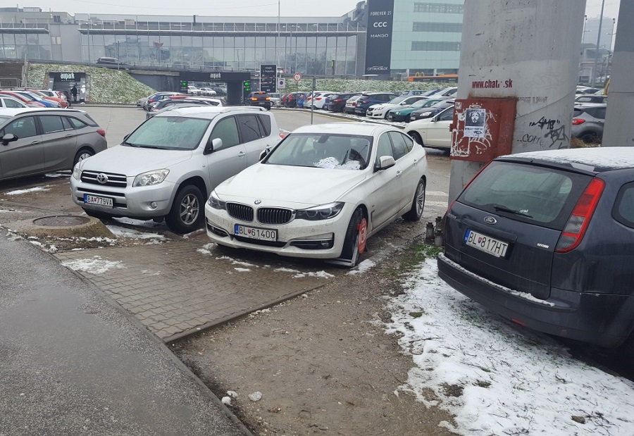Dodám len, že zväčša išlo o autá s ŠPZ mimo BA okresu a nie „prémiové“ vozy. Situácia č.2 – papuča. Obr. 1 a 2 - prečo toto auto nebolo odtiahnuté?