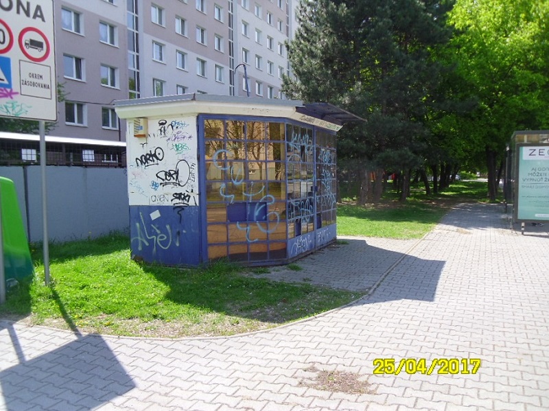V blízkosti zastávky MHD s názvom Lachova, a vchodu do domu č.17 na Furdekovej ul. je nečinný a nefunkčný stánok už druhý rok, o ktorý nemá nikto záujem.