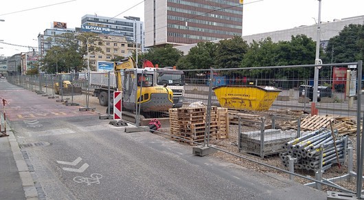 V týchto dňoch na Špitálskej ulici na dosť dlhom úseku odkryli stred vozovky a kladú tam nové koľajnice, ale iba pre električky...