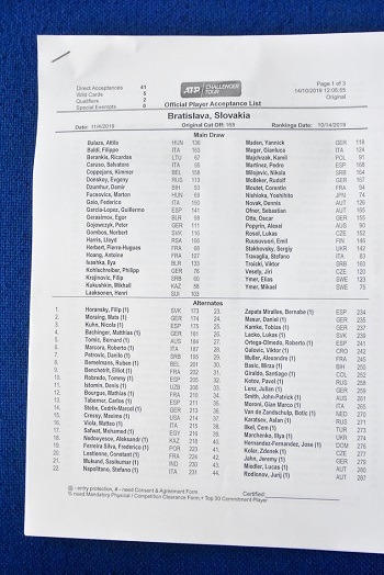 Jozef Kovalík podobne. Martin Kližan je zranený a ukončil sezónu. Trojnásobný víťaz podujatia Lukáš Lacko bude potrebovať divokú kartu, ale mal by sa predstaviť rovnako ako Filip Horanský, ktorý je prvý pod čiarou.