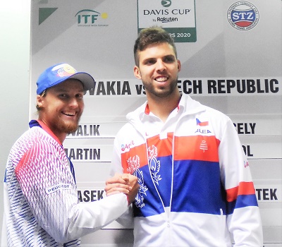 Slovenská tenisová dvojka Jozef Kovalík a česká jednotka Jiří Veselý nastúpia v piatok o 16.00 h proti sebe v úvodnej dvojhre kvalifikačného duelu o postup na finálový turnaj Davisovho pohára.