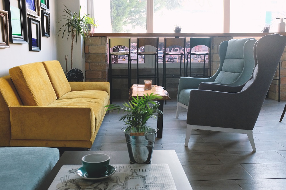 Štýlovo pôsobí určite aj to, že mnoho doplnkov v kaviarničke dostalo „druhú šancu“. Či už staré tehly, ktoré by vedeli písať svoj vlastný príbeh, drevené lampy a rámy obrazov dotvárajú atmosféru, ktorá vo vás vyvolá pocit pohody.