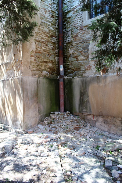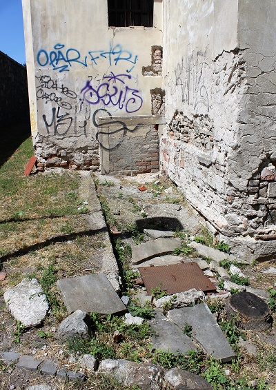 Kapucínska ulica - múrik chátra už roky a vyzerá to, že výsadba na ňom už vyschla